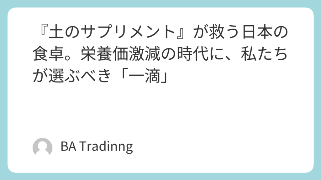 『土のサプリメント』が救う日本の食卓。栄養価激減の時代に、私たちが選ぶべき「一滴」