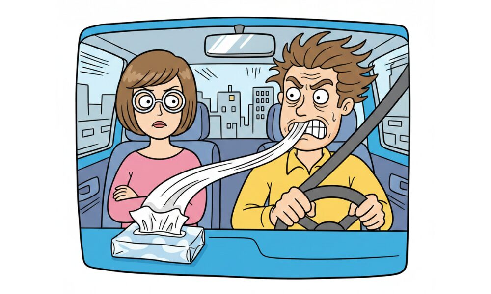 それは、国道を走行中の出来事だった。 ふと鼻がムズムズし、左手を伸ばしてダッシュボードのソフトパックティッシュに指をかける。